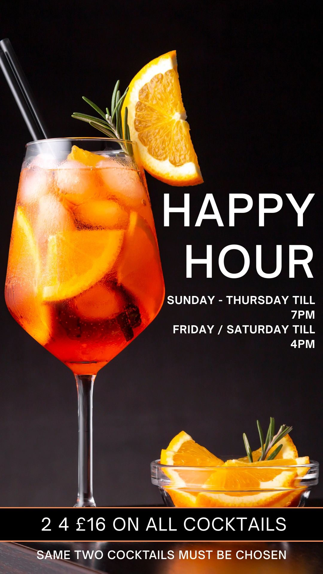 We all need a place to relax after work, so why not do it with a drink in your hand? Join us for Happy Hour every day - 2 for £16 same cocktails.